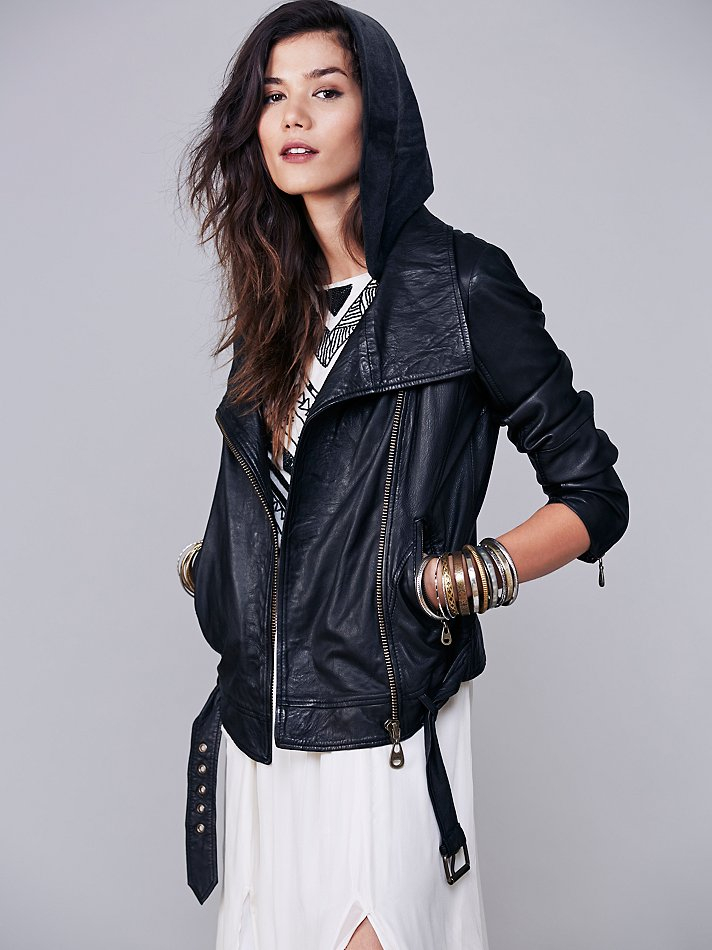 Amazing Free People Hooded Leather Jacket Wallpaper